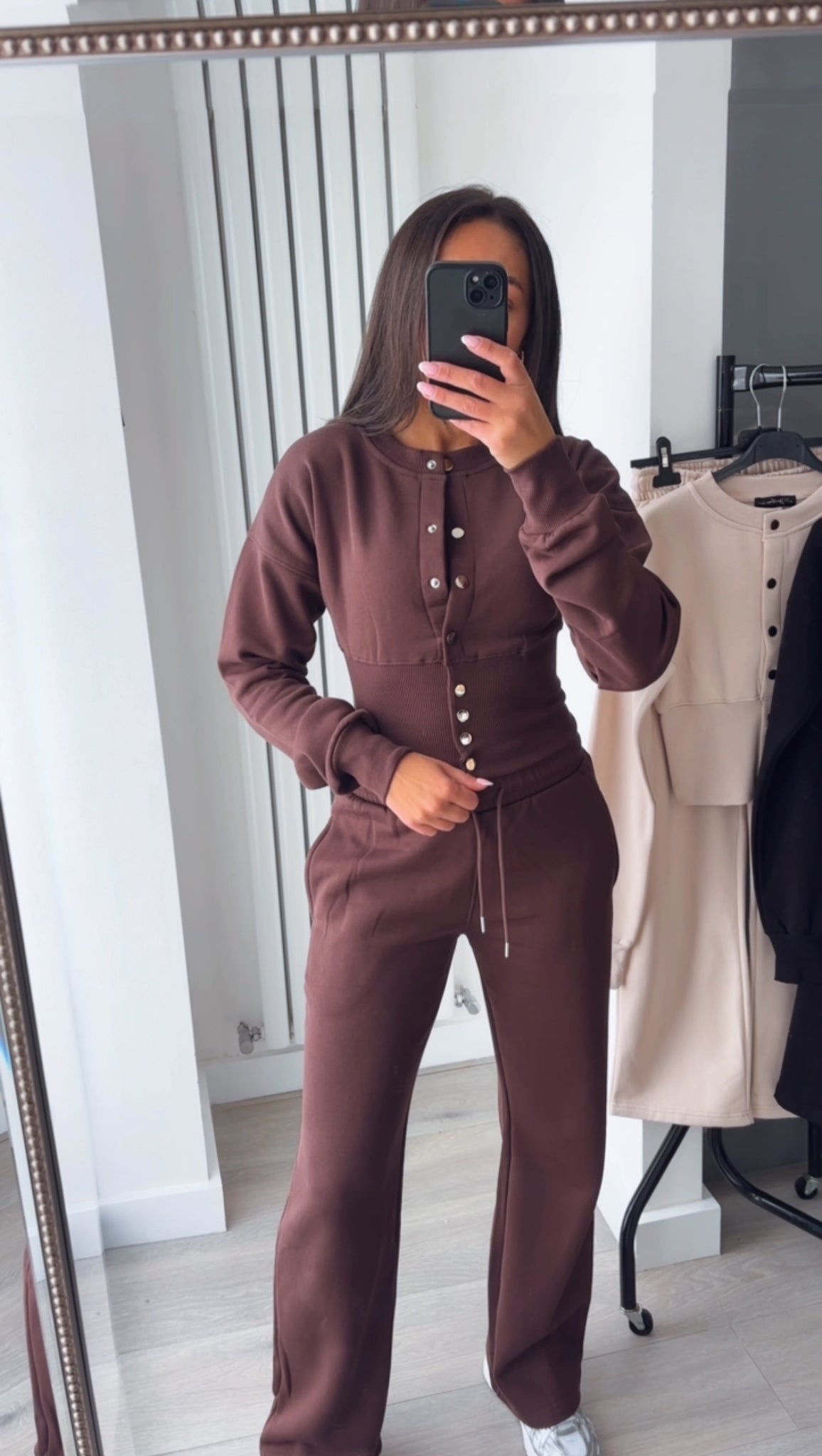Step out in style with the Chloe button front cinch waist ling sleeve top and jogger set. This stunning set features a cinched waist design jacket with button detail and matching joggers that offer ultimate comfort.