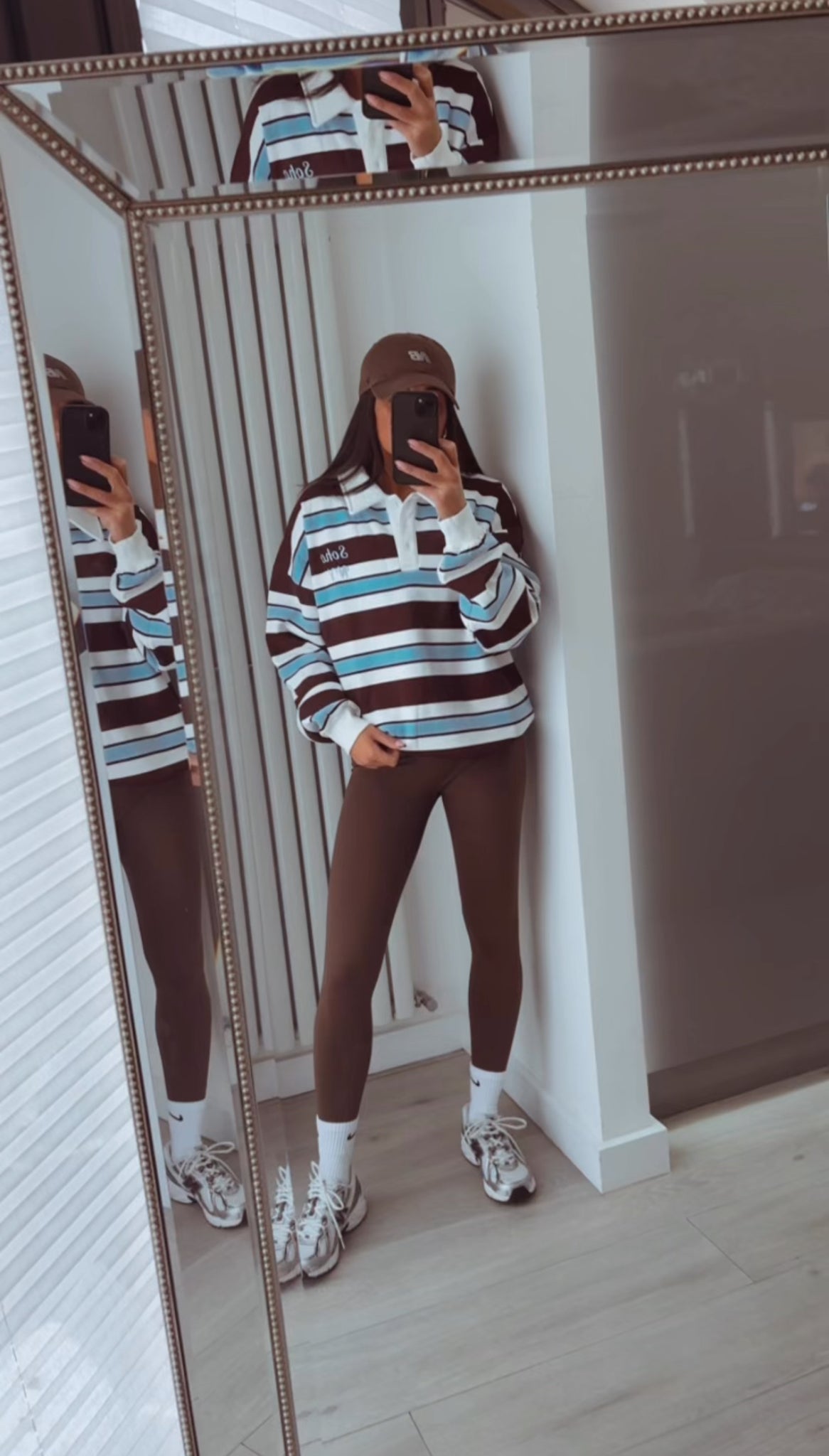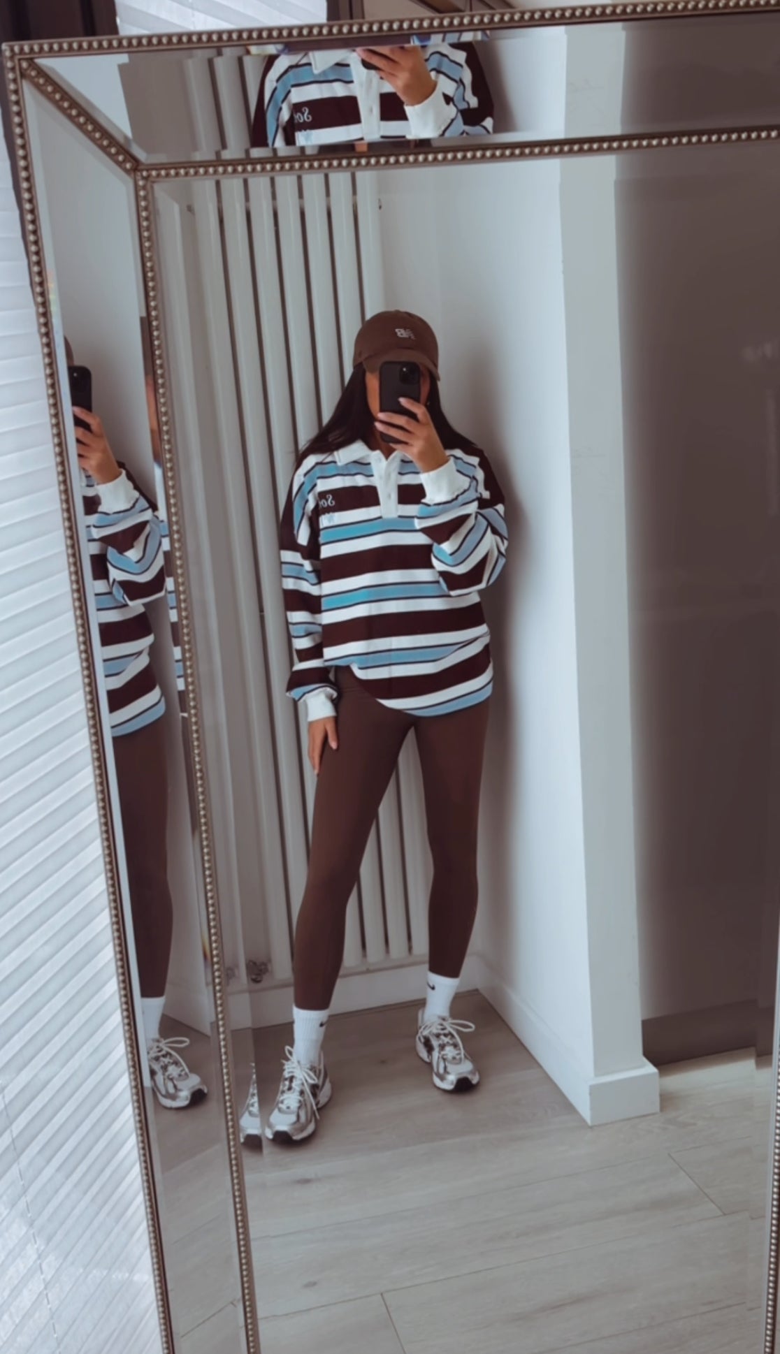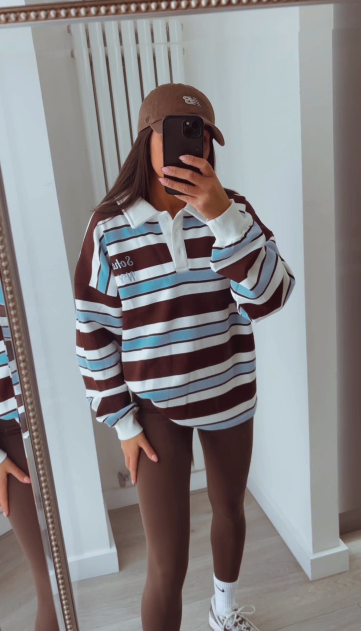 Marcie stripe long sleeve collared rugby style top - brown/blue